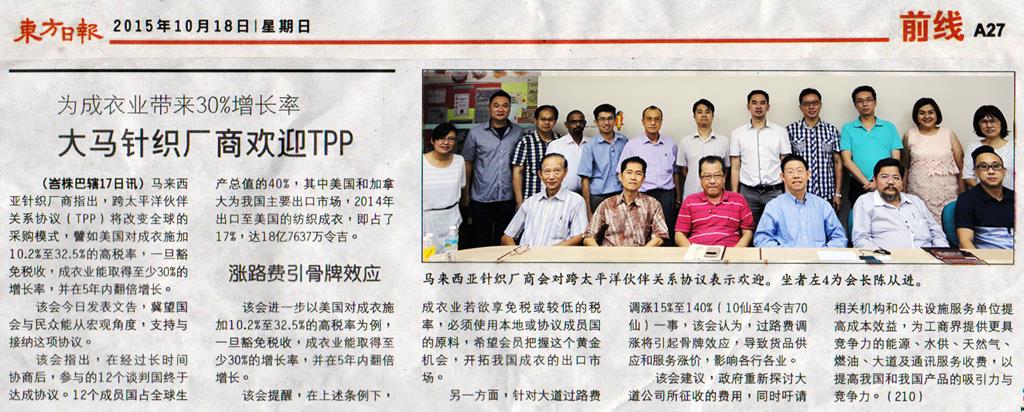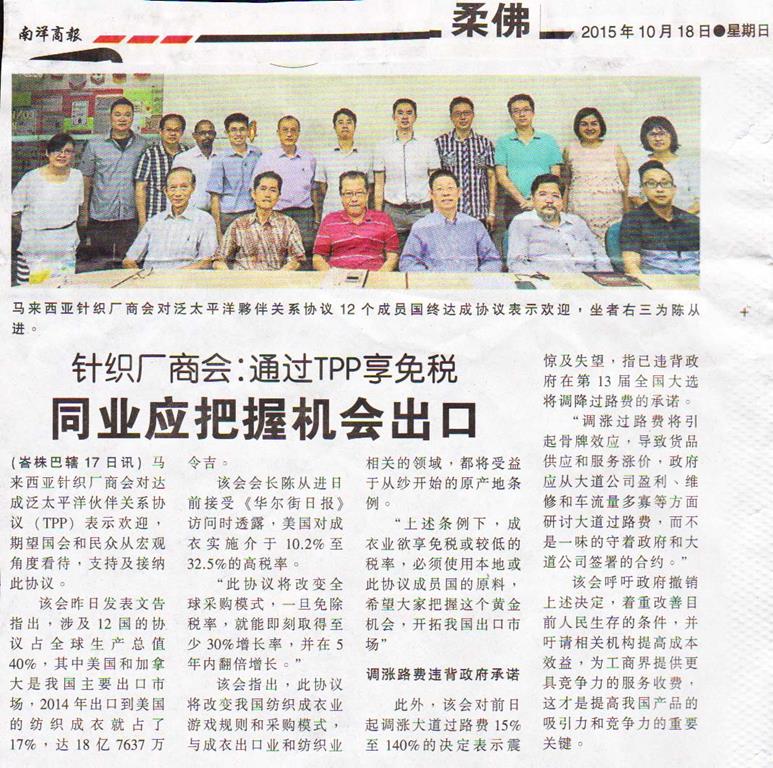 ‘We have been long waiting for this.’ said Tang Chong Chin, Managing Director of United Sweethearts Garment Sdn. Bhd and also president of the Malaysia Knitting Manufacturers Association (MKMA).